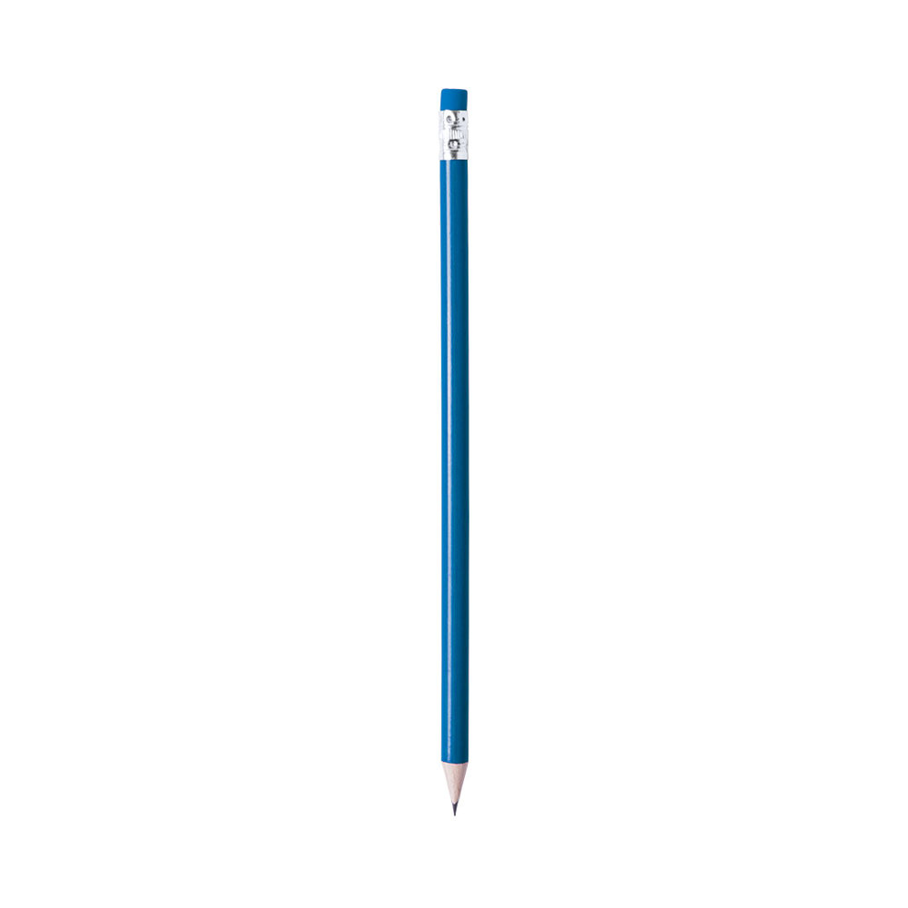 Holzstift mit glänzender Oberfläche. Mit rundem Griff und passendem Radiergummi. Erhältlich in einer Vielzahl von Farben. Schwarze Mine und scharfe Spitze.