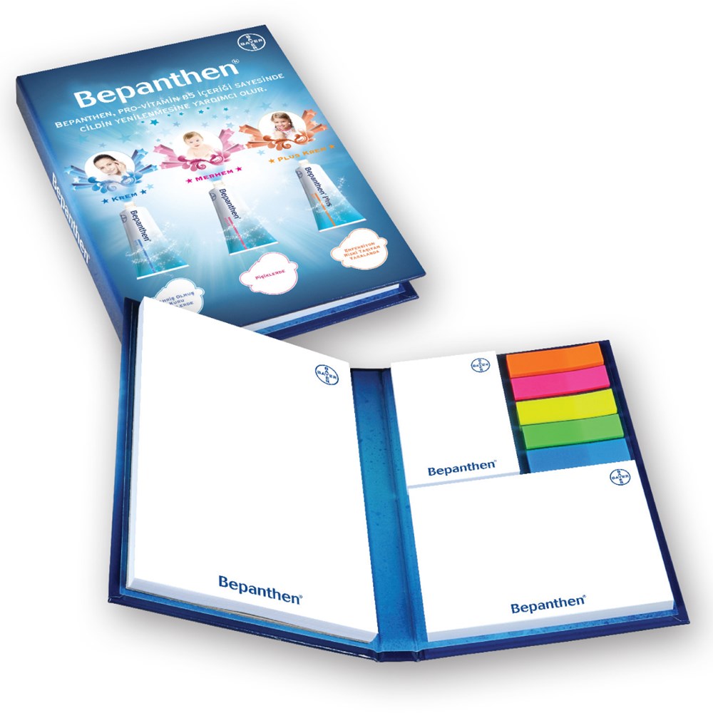 Hardcover-Booklet mit Notizblock, Haftnotizen und Indexstreifen