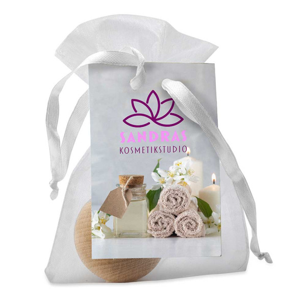 Der Handschmeichler aus unbehandeltem Holz verspricht Ruhe, Entspannung und ein angenehmes Gefühl. Mit seiner glatten Oberfläche, den weichen Kanten und seiner interessanten Form bietet er spielerisch ein angenehmes und zugleich(ent)spannendes Tasterlebnis. Eine optionale Lasergravur sorgt für bleibende Werbung. Geliefert im Organzasäckchen mit einem angebrachten Hangtag, welcher auf der Vorder- und Rückseite individuell gestaltet werden kann.