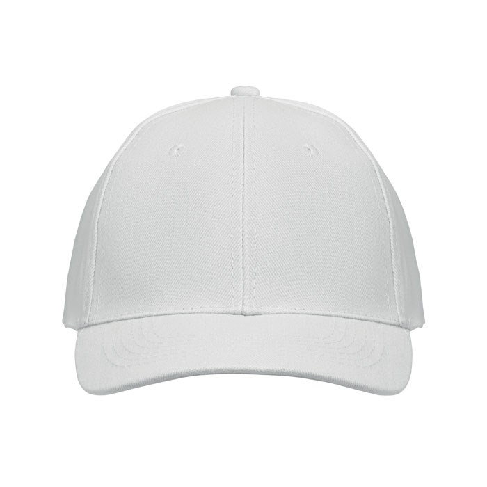 6-Panel-Baseball-Cap aus gebürsteter Baumwolle 260 g/m² mit silberner Schnalle aus Stahl mit Einstecklasche. Sechs farblich abgestimmte, umstickte Belüftungslöcher. Größe 7 1/4.