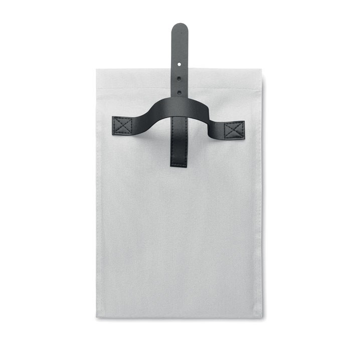Lunch-Kühltasche aus 600D RPET-Polyester mit Rolltop. Tragegriff und Verschluss aus PU. Isolierung: 3mm PE-Schaum mit PEVA.