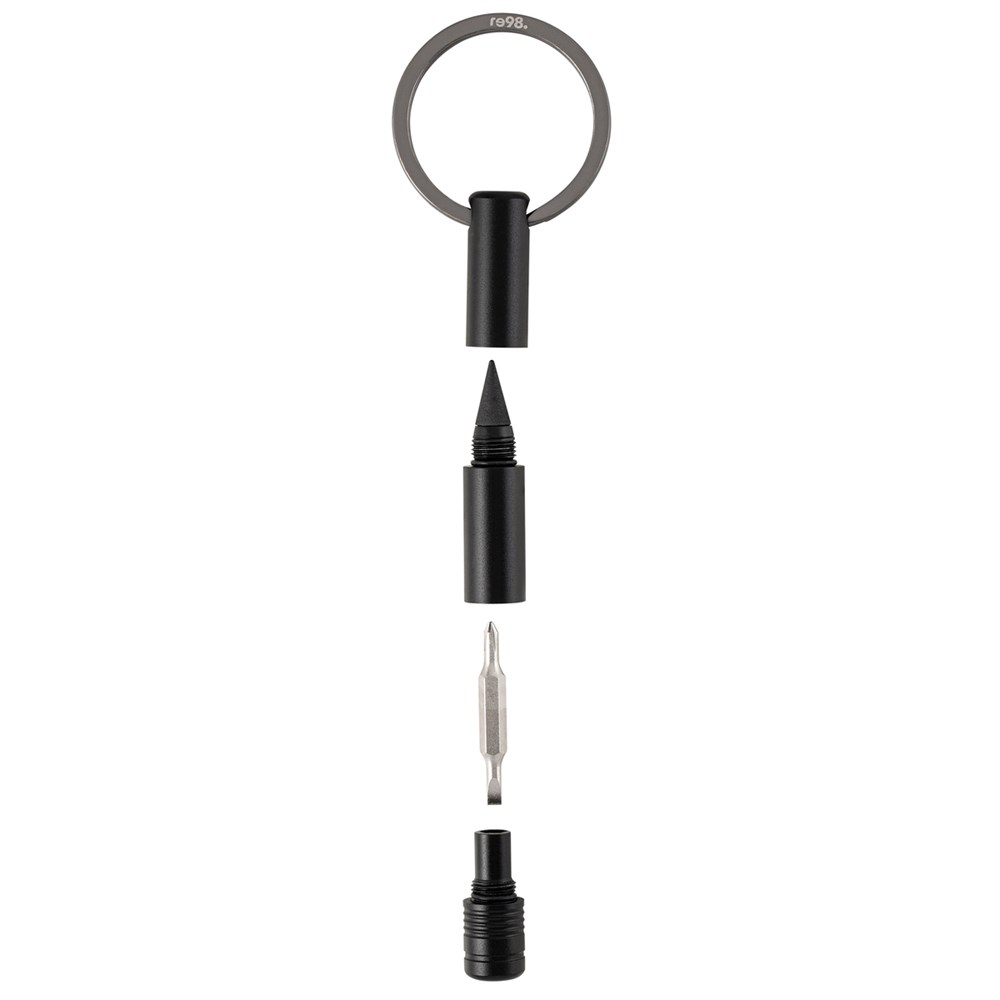 Der 3-in-1 multifunktionale Schlüsselanhänger ist ein nützlicher Helfer am Schlüsselbund. Ausgestattet mit einem magnetischen Bit und einer Endlos-Schreibspitze, bietet das Tool schnelle Lösung für unterwegs. Der Bit ist aus besonders hartem Stahl mit einer Rockwell Härte von 55 bis 60 HRC. Sowohl ein Schlitz- als auch ein Kreuzschlitzaufsatz stehen zur Verfügung. Diese sind ideal für Feinmechanik-Arbeiten, wie das Öffnen von Batteriefächern oder das Feststellen von Brillenbügeln. Die radierbare Endlos-Schreibspitze schafft Abhilfe, wenn ein Stift zur Hand sein muss.