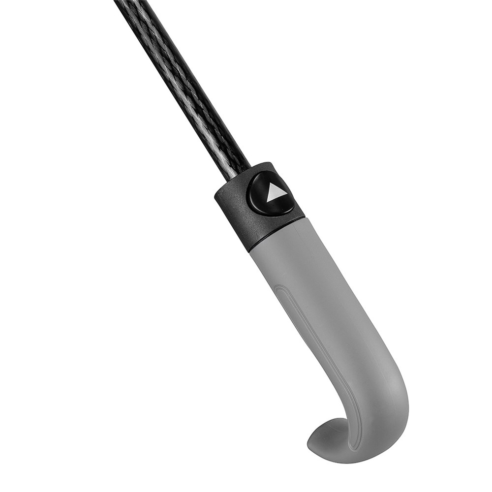 Dieser Schirm aus hochwertigem 190T rPET-Pongee überzeugt durch seine Strapazierfähigkeit und Umweltfreundlichkeit. Mit einem Durchmesser von ca. 122 cm bietet er optimalen Schutz vor Wind und Regen. Der Schirm lässt sich dank der Automatik-Funktion mühelos öffnen und schließt auf eine Länge von ca. 90 cm. Die 10 Segmente sorgen für besonders hohe Stabilität, während die Windproof-Funktion ihn selbst bei stärkeren Böhen zuverlässig schützt. Der gebogene Handgriff in J-Form, PU-beschichtet und in der Farbe der Bespannung, liegt angenehm in der Hand und rundet das elegante Design ab.