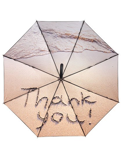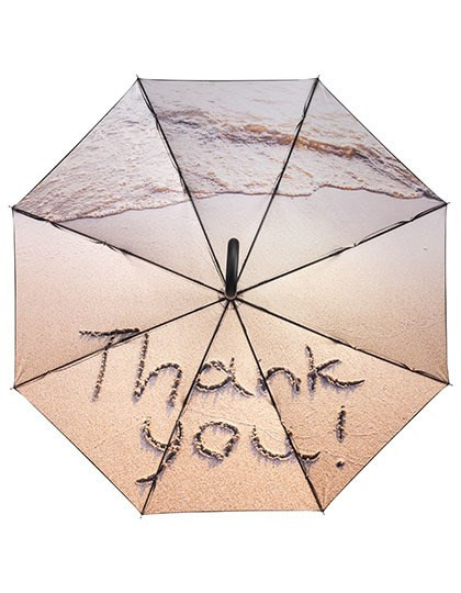Bezug: 100% Polyester-Pongee | Griff: Kunststoff | Stock: Stahl | Automatik-Funktion | Hochwertiges Windproof-System für eine maximale Gestell-Flexibilität bei stärkeren Windböen | Flexible Fiberglasschienen | Von außen beschichteter Bezug mit Transferdruck innen | Soft-Touch-Rundhakengriff mit integrierter Auslösetaste und Werbeanbringungsmöglichkeit | Höherer Korrosionsschutz durch schwarze Galvanisierung des Stahlstocks