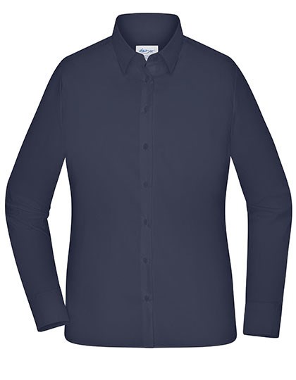 Feine, elastische Popeline-Qualität mit bügelleichter EASY-CARE-Ausrüstung | Angenehmer Materialmix aus Baumwolle, Polyamid und Elasthan | Abgerundeter Saum | Doppellagige Schulter- und Rückenpasse | Kleiner weicher Kragen