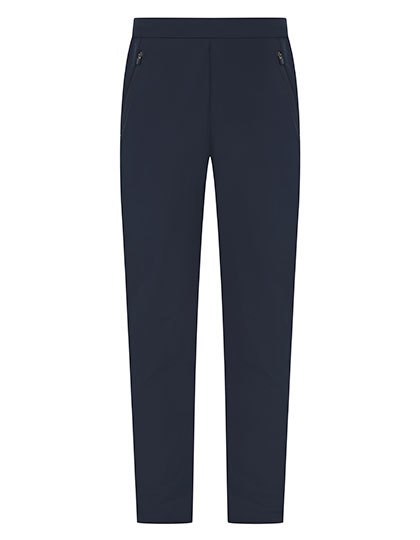 4-Wege-Stretchmaterial aus Mikrofaser | Antistatisches Finish | Verjüngtes Bein | Zwei Seitentaschen mit Reißverschluss und Reißverschlusstasche hinten, jeweils mit Reißverschluss zum Herunterdrücken | Passe hinten mit Mittelnaht | Flacher Bund vorne mit elastischer Rückseite | Interner Kordelzug mit genähten Enden | Steppnähte | Säume mit Zwillingsnadelstich | Abreißetikett
