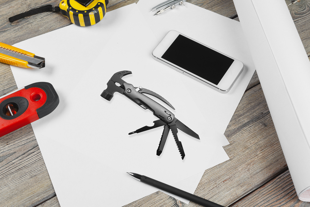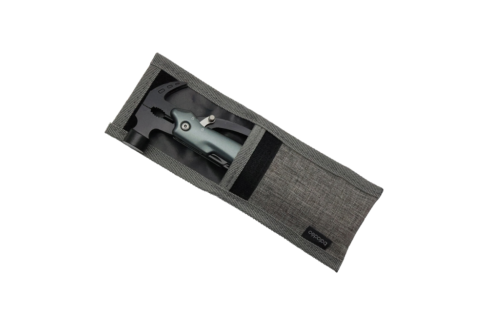 Professioneller Multifunktionshammer aus hochfestem Edelstahl 420. Griff aus Aluminium. Sicherheitsverriegelung der neuen Generation (einfache Entriegelung). Verschraubte Torx-Montage. 11 Funktionen: Hammer, Universalzange, Drahtschneider, Messer, Säge, Schere, Feile, Flaschenöffner, Nagelheber, Kreuzschlitzschraubendreher, Schlitzschraubendreher. Rockwell-Härte: 48 Grad. Geliefert in einem Gürteletui aus meliertem Nylon 420D.
