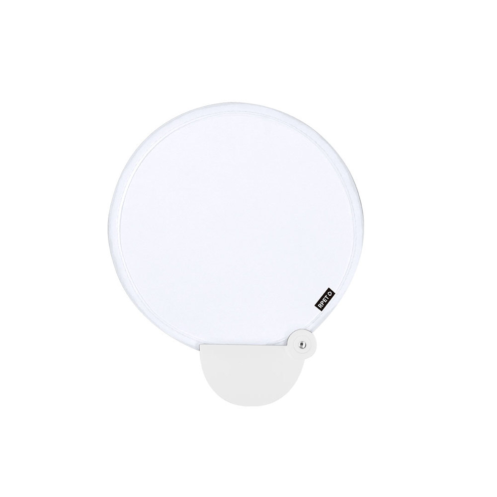Faltbarer Fächer aus RPET. Dank des Faltmechanismus leicht zu transportieren, enthält eine RPET-Kennzeichnung.Das RPET-Material wird aus recyceltem Kunststoff hergestellt, um die Wiederverwendung von Kunststoffabfällen zu fördern und zur Nachhaltigkeit des Planeten beizutragen.
