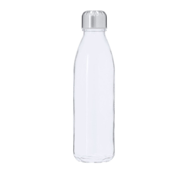 Flasche aus recyceltem Glas mit 650 ml Kapazität und Edelstahlverschluss, BPA-frei. Mit dem Markenzeichen Recycled Glass.