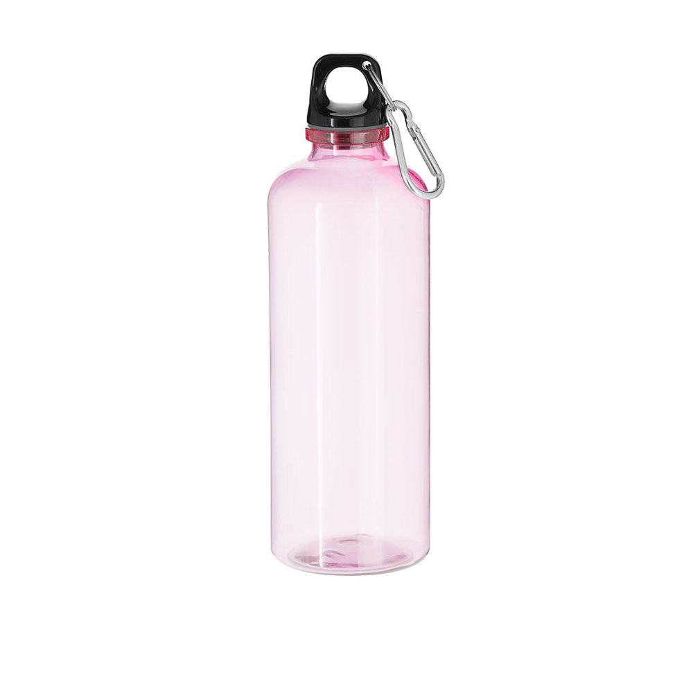 Flasche aus strapazierfähigem RPET mit einer Kapazität von 630 ml. Translucenter Körper und schwarzer Schraubverschluss für eine optimale Abdichtung. Mit einem Metallkarabiner, der den Transport erleichtert. BPA-frei.Das RPET-Material wird aus recyceltem Kunststoff hergestellt, um die Wiederverwendung von Kunststoffabfällen zu fördern und zur Nachhaltigkeit des Planeten beizutragen.