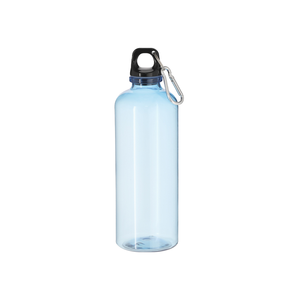 Flasche aus strapazierfähigem RPET mit einer Kapazität von 630 ml. Translucenter Körper und schwarzer Schraubverschluss für eine optimale Abdichtung. Mit einem Metallkarabiner, der den Transport erleichtert. BPA-frei.Das RPET-Material wird aus recyceltem Kunststoff hergestellt, um die Wiederverwendung von Kunststoffabfällen zu fördern und zur Nachhaltigkeit des Planeten beizutragen.