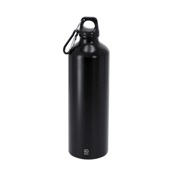 Flasche mit 800 ml Kapazität. Hergestellt aus strapazierfähigem und nachhaltigem recyceltem Aluminium. Mit schwarzem Schraubverschluss und passendem Karabiner für einfachen Transport. Körper mit mattierter Oberfläche. BPA-frei. Mit dem Markenzeichen Recycled Aluminium.Recyceltes Aluminium ist ein Material mit nahezu unendlichen Recyclingmöglichkeiten, ohne seine ursprünglichen Eigenschaften zu verlieren und verbraucht weniger Energie in diesem Prozess.