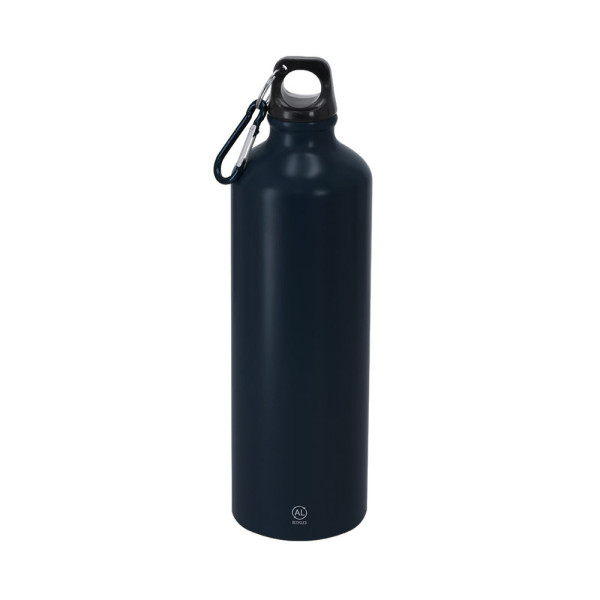 Flasche mit 800 ml Kapazität. Hergestellt aus strapazierfähigem und nachhaltigem recyceltem Aluminium. Mit schwarzem Schraubverschluss und passendem Karabiner für einfachen Transport. Körper mit mattierter Oberfläche. BPA-frei. Mit dem Markenzeichen Recycled Aluminium.Recyceltes Aluminium ist ein Material mit nahezu unendlichen Recyclingmöglichkeiten, ohne seine ursprünglichen Eigenschaften zu verlieren und verbraucht weniger Energie in diesem Prozess.