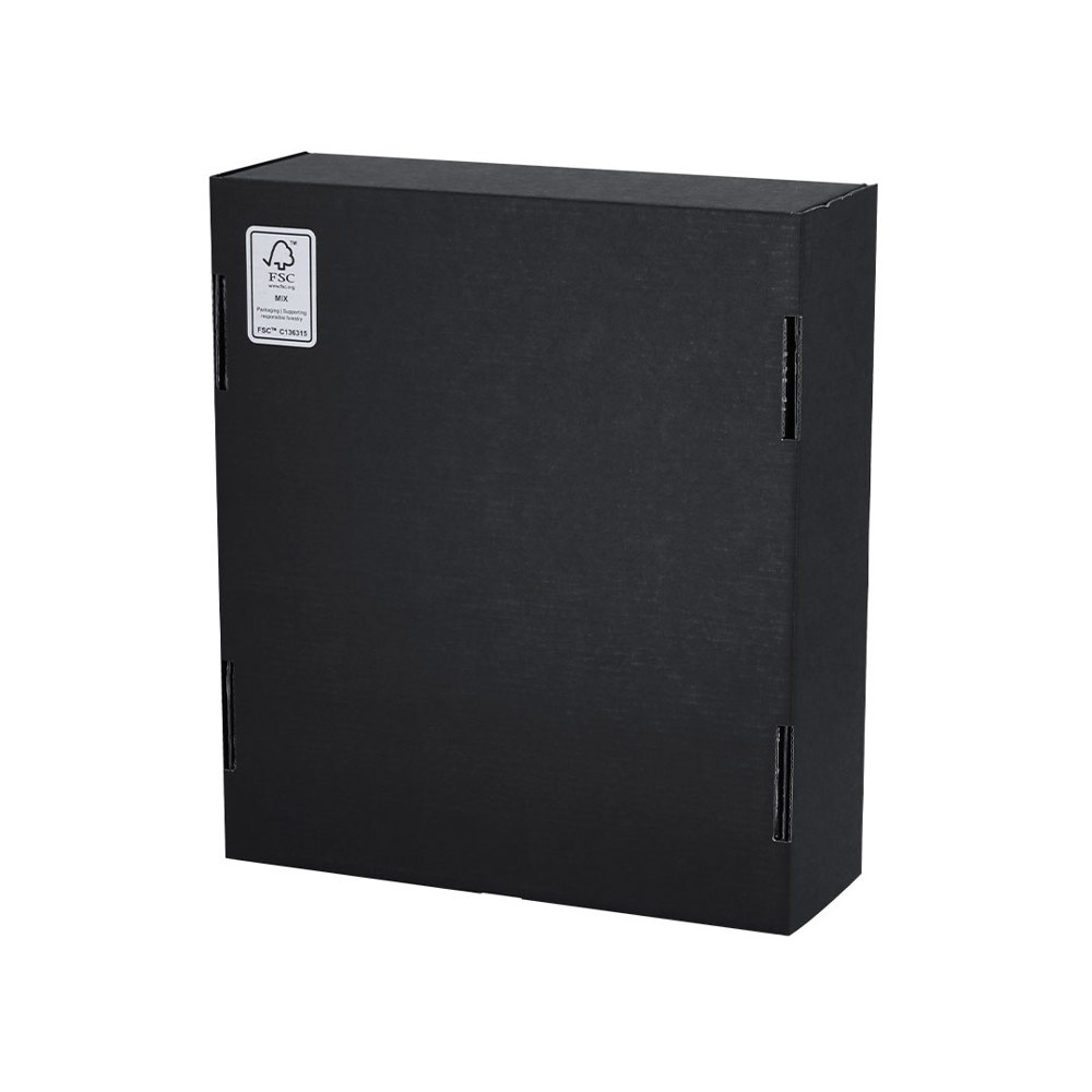 Präsentationsbox Größe XL. Aus schwarzem Wellpappe. Im Einklang mit dem Marktentwicklungsziel der ganzheitlichen Nachhaltigkeit von Geschenken, die Lösungen bietet, um zur Verbesserung und Erhaltung unseres Planeten beizutragen.