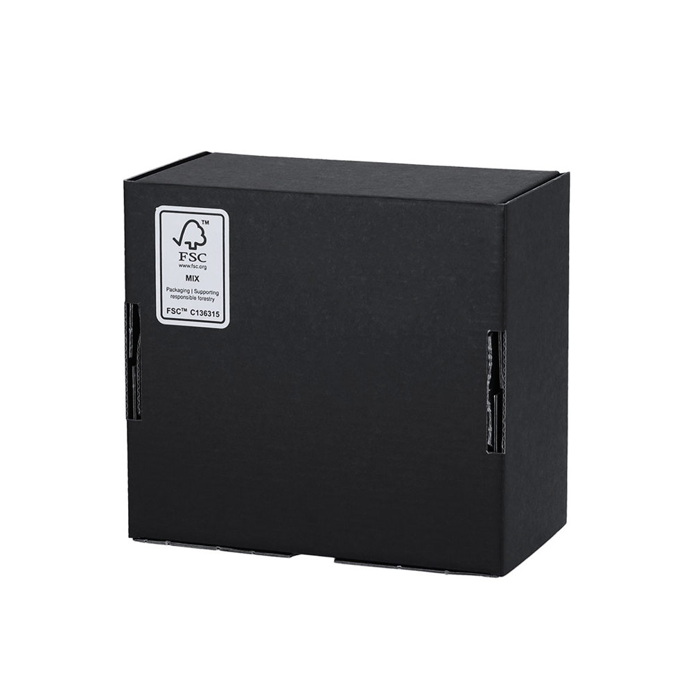 Präsentationsbox Größe S, aus schwarzem Wellpappe. Im Einklang mit dem Marktentwicklungsziel der ganzheitlichen Nachhaltigkeit von Geschenken, die Lösungen bietet, um zur Verbesserung und Erhaltung unseres Planeten beizutragen.