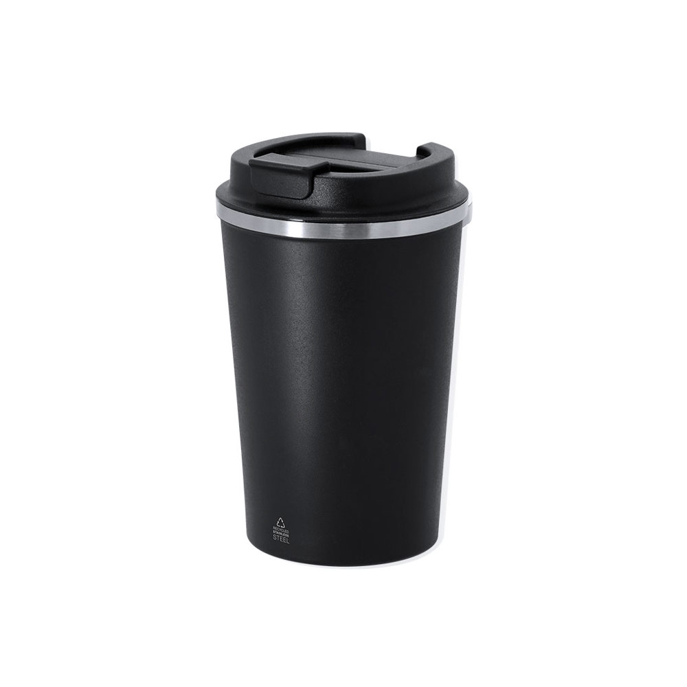 Thermobecher aus recyceltem Edelstahl, doppelwandig, mit einem Fassungsvermögen von 350 ml. Mit doppelter Wand für bessere und langlebigere Temperaturkonservierung und Innenbeschichtung aus Keramik, geeignet für kohlensäurehaltige Getränke. Ausgestattet mit einem Dosierer auf dem Deckel in Schwarz, der Leckagen verhindert und BPA-frei ist. Mit Kennzeichnung für recycelten Edelstahl.Edelstahl ist eines der gefragtesten Materialien und kann fast überall gefunden werden, von Alltagsprodukten bis hin zu großen Konstruktionen. Mit unzähligen Eigenschaften, darunter Haltbarkeit und hohe Wiederverwendbarkeit, ist es eine sehr geschätzte Alternative in Nachhaltigkeitslösungen. Richtig verarbeitet, ermöglicht es die Gewinnung neuer Ressourcen von unendlicher Nutzung.