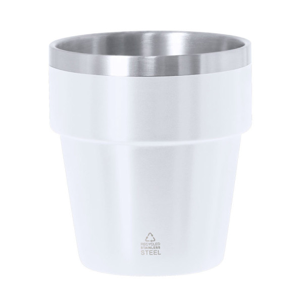 Thermobecher aus recyceltem Edelstahl mit doppelter Wand und einer Kapazität von 250 ml. Satinierte Oberfläche mit satiniertem Stahlrand und Innenmaterial. Mit Logo für recycelten Edelstahl.Edelstahl ist eines der am meisten nachgefragten Materialien und kann fast überall gefunden werden, von Alltagsprodukten bis hin zu großen Bauwerken. Mit zahlreichen Eigenschaften, darunter die Langlebigkeit und die hohe Wiederverwendbarkeit, ist er eine sehr geschätzte Alternative für nachhaltige Lösungen. Gut behandelt ermöglicht es, neue Ressourcen mit unendlichem Nutzen zu gewinnen.