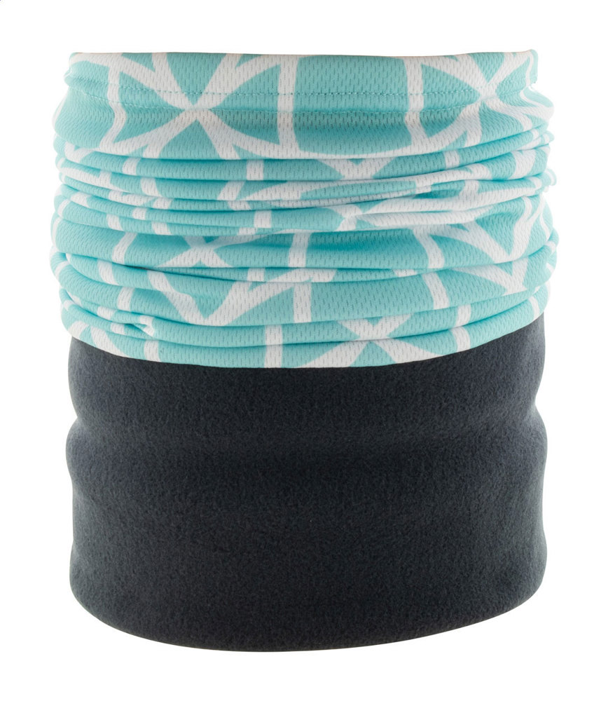 Individueller Multifunktionsschal aus atmungsaktivem und schnell trocknendem Polyester mit farbigem Polarfleece-Halswärmer. Der Preis ist inkl. vollflächigem Sublimationsdruck auf dem Polyesterteil. Material: 100 % Polyester (135 g/m²) und Polarfleece (160 g/m²). Mindestmenge: 100 Stk.