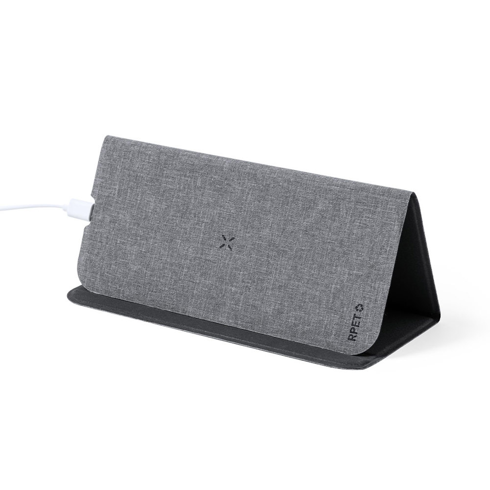 Faltbare Mauspad mit einer Naturlinie und aus einer Kombination von Wildleder und RPET-Polyester, hergestellt aus recyceltem Kunststoff um die Wiederverwendung von Kunststoffabfällen zu fördern und die Nachhaltigkeit des Planeten zu unterstützen. Mit integriertem kabellosem 10-W-Ladegerät - Typ-C-Kabel im Lieferumfang enthalten -. Rutschfester Untergrund und Smartphone-Halterung in mehreren Positionen. Kompatibel mit Geräten die mit kabelloser Ladetechnologie ausgestattet sind und in einer attraktiven umweltfreundlichen Verpackung präsentiert. Gebrauchsanweisung in Englisch und Spanisch erhältlich. RPET-Abzeichen auf dem Artikel.In Übereinstimmung mit den Sicherheitsanforderungen:Überhitzungsschutzsystem.Überlastungsschutzsystem.Verriegelungssystem zur Vermeidung von Kurzschlüssen.
