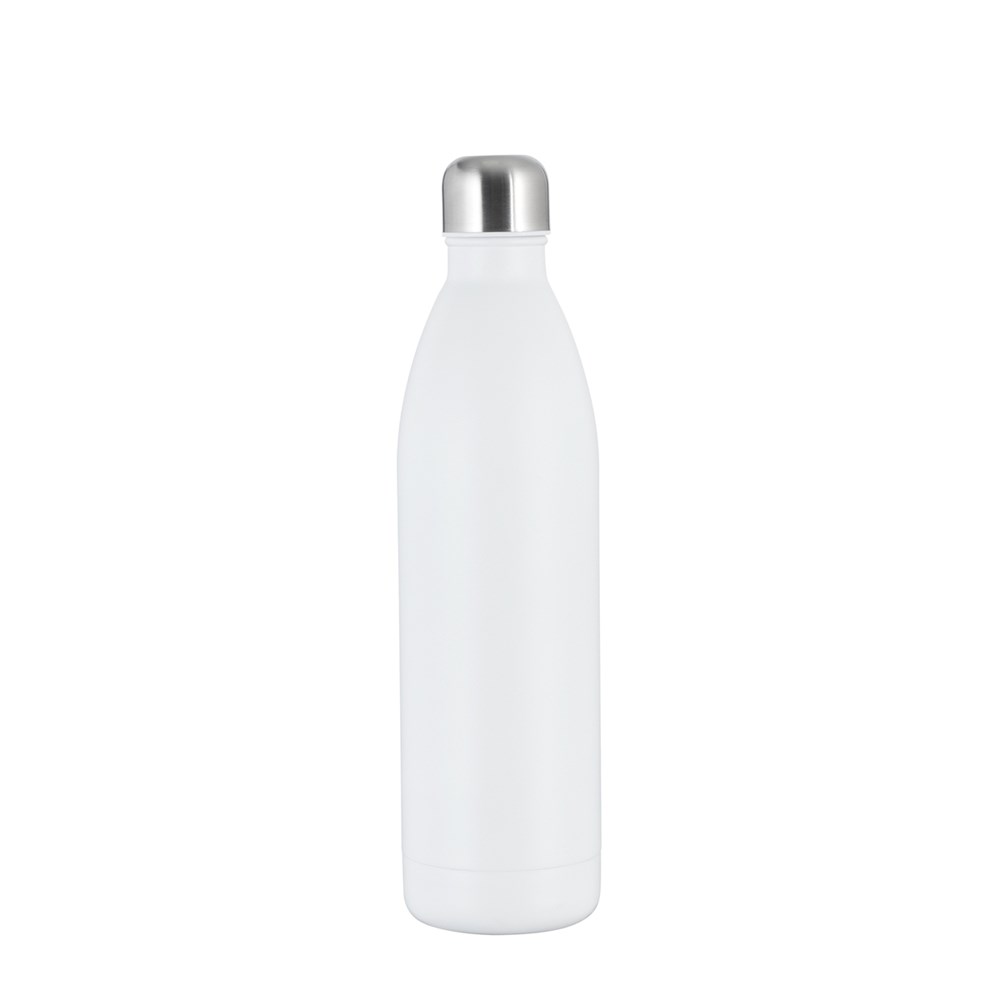 Die doppelwandige Thermo Trinkflasche fasst 750 ml und ist somit die größere Alternative zu unserem ursprünglichen Modell. Sie hält Ihre Getränke zuverlässig heiß oder kalt und besticht durch ihre besonders große, prominente Logofläche. Sie ist entweder mit weißer oder schwarzer Pulverbeschichtung oder in Edelstahl matt silber mit Antifingerprint-Beschichtung erhältlich. Der Drehverschluss schützt vor dem Auslaufen.