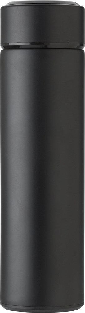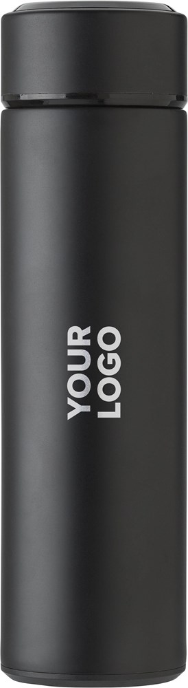 Edelstahl-Thermosflasche (450 ml) mit Edelstahl-Teeaufguss und LED-Anzeige auf der Oberseite des Deckels, die die Temperatur des Inhalts anzeigt. Die Temperatur wird angezeigt, wenn die LED-Anzeige angetippt wird.