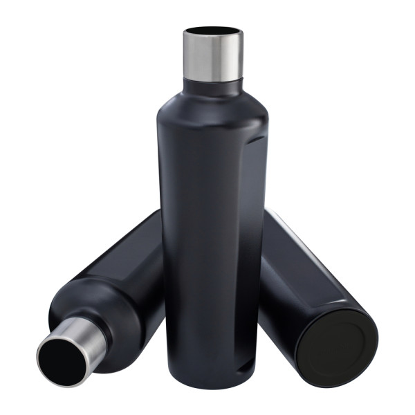 Ein echter Hingucker: Die doppelwandige Thermotrinkflasche mit Vakuum-Isolierung kann mit einem farbigen TPR-Boden und Deckelakzent aus Silikon kombiniert werden. Viele verschiedene Farben stehen ab Köln zur Auswahl. Die von REFLECTS selbst designte Flasche wird in drei verschiedenen Farben (Schwarz, Weiß, Silber) mit hochwertiger Pulverbeschichtung angeboten.