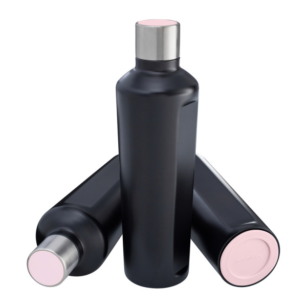 Ein echter Hingucker: Die doppelwandige Thermotrinkflasche mit Vakuum-Isolierung kann mit einem farbigen TPR-Boden und Deckelakzent aus Silikon kombiniert werden. Viele verschiedene Farben stehen ab Köln zur Auswahl. Die von REFLECTS selbst designte Flasche wird in drei verschiedenen Farben (Schwarz, Weiß, Silber) mit hochwertiger Pulverbeschichtung angeboten.