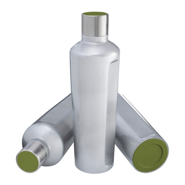 Ein echter Hingucker: Die doppelwandige Thermotrinkflasche mit Vakuum-Isolierung kann mit einem farbigen TPR-Boden und Deckelakzent aus Silikon kombiniert werden. Viele verschiedene Farben stehen ab Köln zur Auswahl. Die von REFLECTS selbst designte Flasche wird in drei verschiedenen Farben (Schwarz, Weiß, Silber) mit hochwertiger Pulverbeschichtung angeboten.