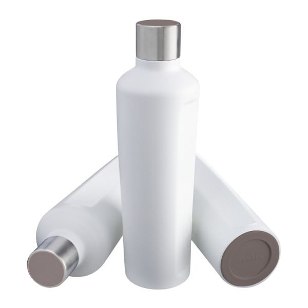 Ein echter Hingucker: Die doppelwandige Thermotrinkflasche mit Vakuum-Isolierung kann mit einem farbigen TPR-Boden und Deckelakzent aus Silikon kombiniert werden. Viele verschiedene Farben stehen ab Köln zur Auswahl. Die von REFLECTS selbst designte Flasche wird in drei verschiedenen Farben (Schwarz, Weiß, Silber) mit hochwertiger Pulverbeschichtung angeboten.