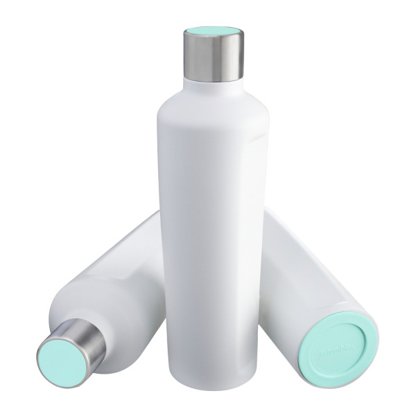 Ein echter Hingucker: Die doppelwandige Thermotrinkflasche mit Vakuum-Isolierung kann mit einem farbigen TPR-Boden und Deckelakzent aus Silikon kombiniert werden. Viele verschiedene Farben stehen ab Köln zur Auswahl. Die von REFLECTS selbst designte Flasche wird in drei verschiedenen Farben (Schwarz, Weiß, Silber) mit hochwertiger Pulverbeschichtung angeboten.