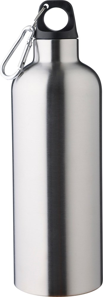 Doppelwandige Flasche aus recyceltem Edelstahl (s/s304) mit einem Fassungsvermögen von 500 ml, PP-Deckel und Aluminium-Karabinerhaken. Hält Getränke 8 Stunden warm und 12 Stunden kalt. Die Flasche hat eine matte Oberfläche (außer Silber) und ist mit einem eingravierten Recycling-Logo versehen. Einzeln verpackt in braunem Karton.