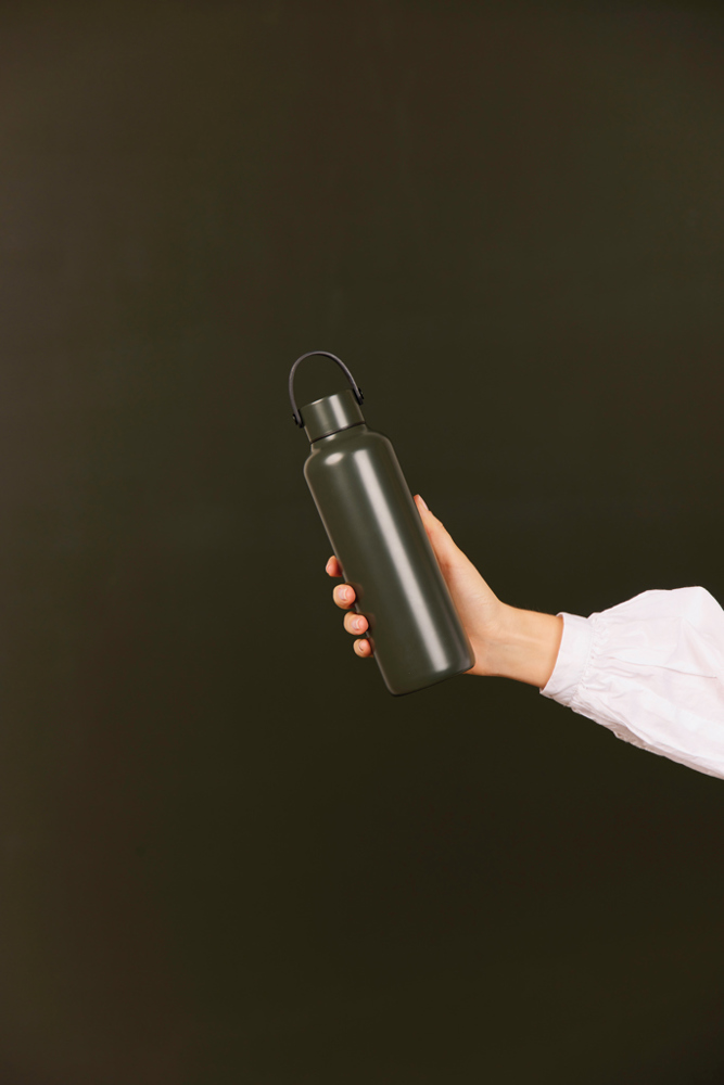 Doppelwandige Vakuumflasche aus RCS-zertifiziert recyceltem Stainless-Steel. Mit einem minimalistischen PU-Griff und schwarzen Details, die die Essenz der Baltimore-Serie einfangen. Die doppelwandige Isolierung hält die Temperatur des Getränks bis zu 12 Stunden lang kalt und bis zu 6 Stunden lang warm, egal ob Sie unterwegs ein kühles Getränk genießen oder ein warmes Getränk zu sich nehmen möchten. Fassungsvermögen 600ml. Auslaufsicher. Nicht spülmaschinen- oder mikrowellengeeignet, nur Handwäsche. Zertifiziert durch RCS (Recycled Claim Standard). Die RCS-Zertifizierung garantiert, dass die gesamte Lieferkette der recycelten Materialien zertifiziert ist. Der gesamte recycelte Inhalt basiert auf dem Gesamtgewicht des Produkts. Dieses Produkt enthält 80% RCS-zertifizierten recycelten Edelstahl.