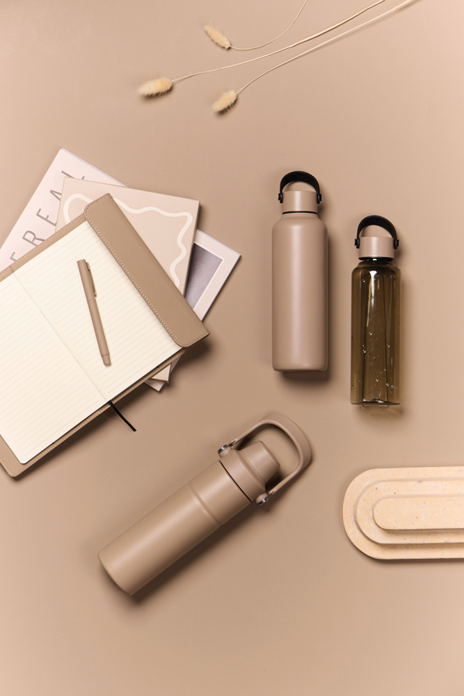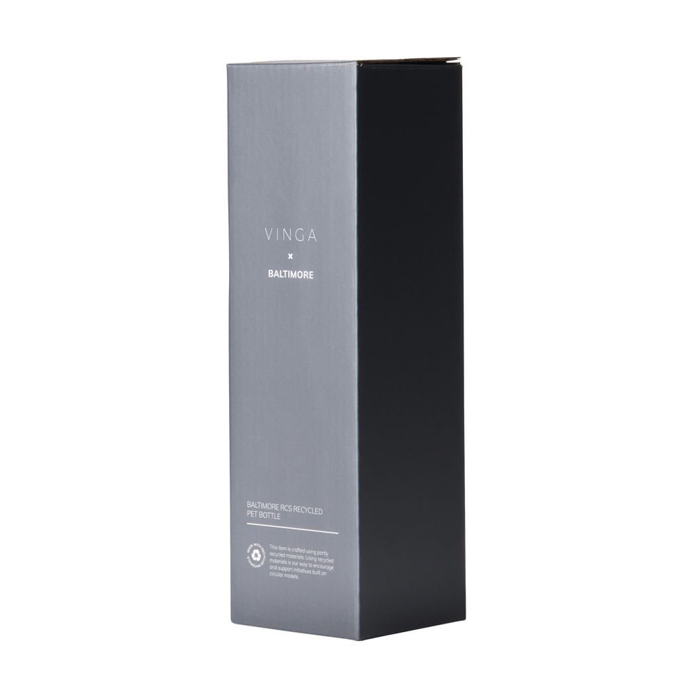 Doppelwandige Vakuumflasche aus RCS-zertifiziert recyceltem Stainless-Steel. Mit einem minimalistischen PU-Griff und schwarzen Details, die die Essenz der Baltimore-Serie einfangen. Die doppelwandige Isolierung hält die Temperatur des Getränks bis zu 12 Stunden lang kalt und bis zu 6 Stunden lang warm, egal ob Sie unterwegs ein kühles Getränk genießen oder ein warmes Getränk zu sich nehmen möchten. Fassungsvermögen 600ml. Auslaufsicher. Nicht spülmaschinen- oder mikrowellengeeignet, nur Handwäsche. Zertifiziert durch RCS (Recycled Claim Standard). Die RCS-Zertifizierung garantiert, dass die gesamte Lieferkette der recycelten Materialien zertifiziert ist. Der gesamte recycelte Inhalt basiert auf dem Gesamtgewicht des Produkts. Dieses Produkt enthält 80% RCS-zertifizierten recycelten Edelstahl.