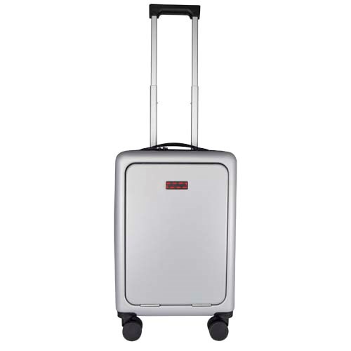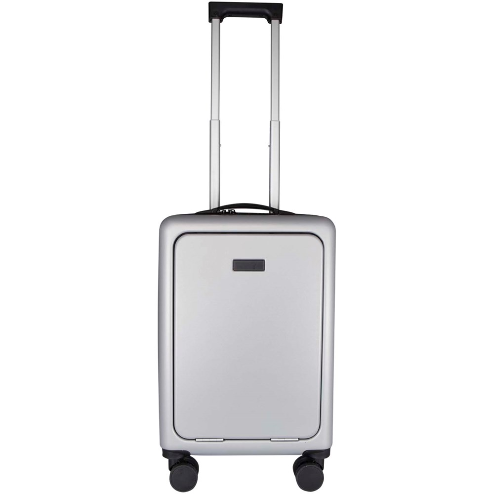 Der Rover Pro 20"-Kabinentrolley überzeugt durch sein nach vorne offenes 20"-Laptopfach und den integrierten USB-Ladeanschluss und ist damit der ideale Reisebegleiter für Geschäfts- und Freizeitreisen. Dieser Trolley besteht aus stoßfestem, GRS-zertifiziertem Recycling-Kunststoff und hochwertigem RPET-Futter. Er verfügt über ein nach vorne offenes Laptopfach mit Organisationsfächern für elektronisches Zubehör und ein TSA-Kombinationsschloss für das Hauptfach und das nach vorne offene Fach. Der Trolley ist außerdem mit 360°-Doppelrollen ausgestattet, die das Manövrieren am Flughafen erleichtern. Er kann bei den meisten Fluggesellschaften als Handgepäck mitgenommen werden.