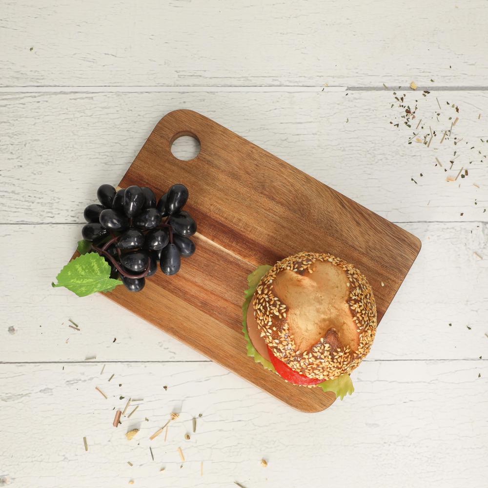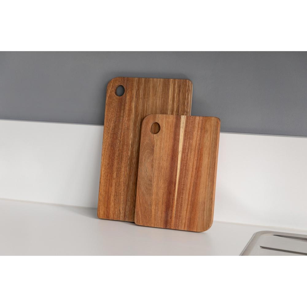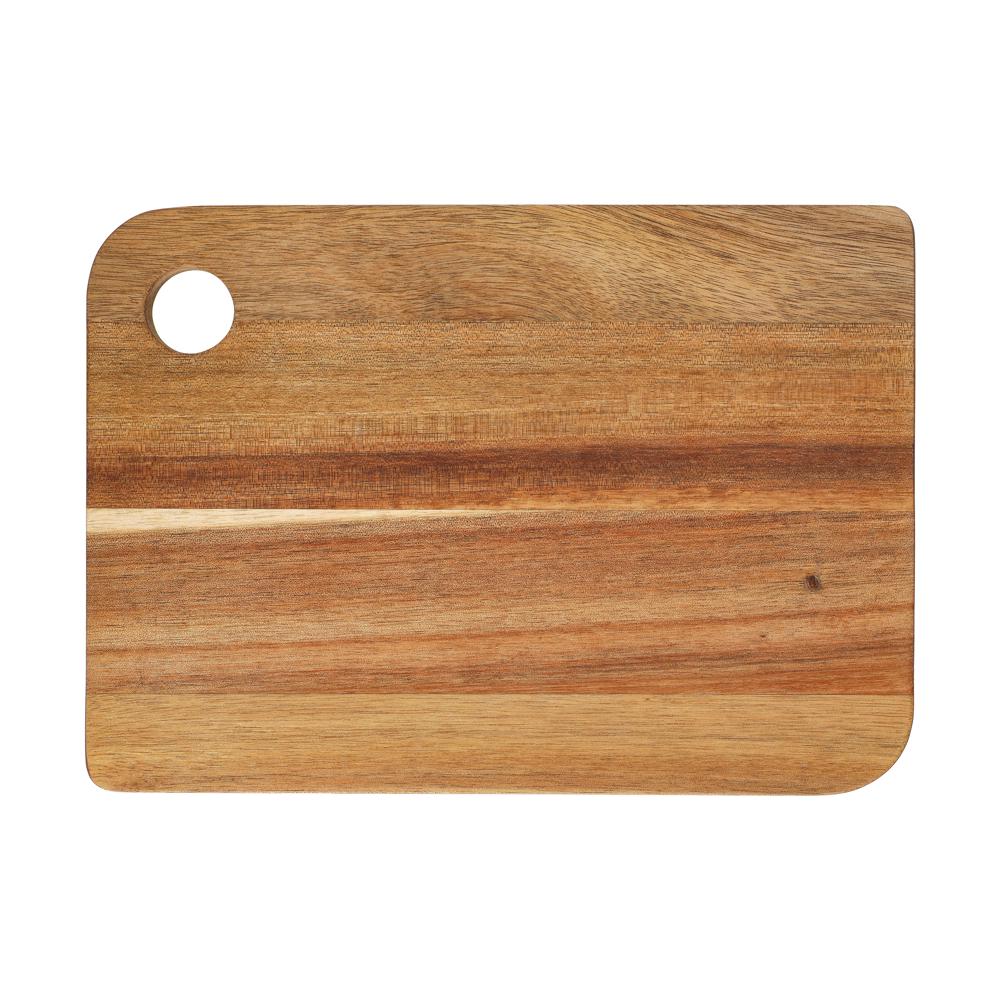 Das robuste Schneidbrett "Acacia" (24,5 x 17,5 cm) aus hochwertigem Akazienholz ist ein Must-have in jeder Küche. Es ist 15 mm dick und mit Sojabohnenöl vorbehandelt, um das Holz zu schützen und seine Maserung zu betonen. Ein Griffloch erleichtert die Handhabung und Aufbewahrung. Ideal für die tägliche Küchenarbeit.