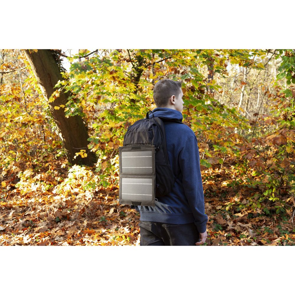 Ladegerät (10W) mit Solarpanels, verarbeitet in einer Schützhülle aus 600D RPET. Die Tasche hat 2 Aufhängeösen und lässt sich öffnen und schließen. Ausgestattet mit einem Klettverschluss. Leicht zu tragen und zu transportieren. Das Solarpanel kann direkt zum Aufladen Ihres Handys oder anderer Geräte verwendet werden, ohne dass eine zusätzliche externe Batterie benötigt wird. Schließen Sie Ihr Mobiltelefon an das Solarpanel an und stellen Sie das Panel in die Sonne. Leistung: 10W - 5V/2A. Eingang: USB-A und Typ-C. Ideal für Reisende, auf Booten, in Wohnmobilen und an Orten, an denen kein Strom verfügbar ist. Maße aufgeklappt: 29,5 x 34,6 x 0,8 cm. Verpackt pro Stück.