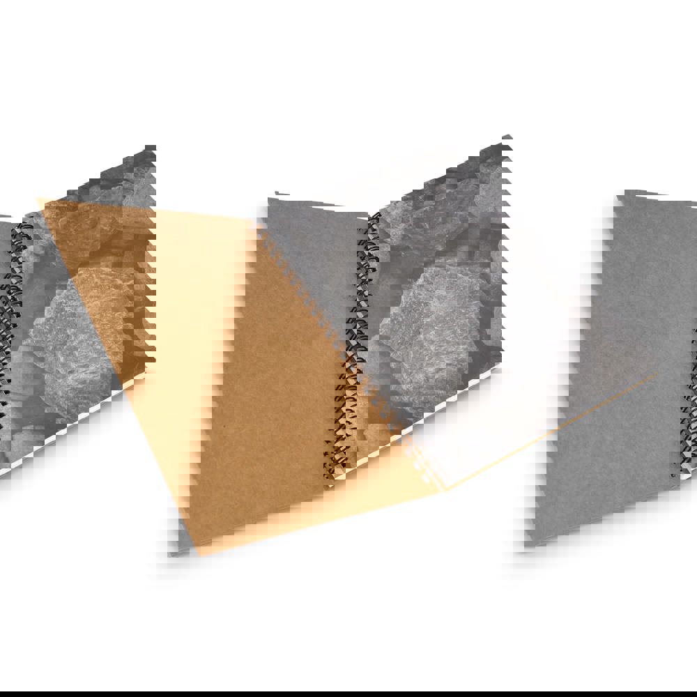 Die Blätter dieses Notizbuches sind aus Steinen gefertigt. Das Resultat ist ein stabiles, glattes Blatt Papier mit einer angenehmen kühlen Haptik. Die Blätter sind an der Seite perforiert, so dass sie leicht aus dem Notebook entnommen werden können.