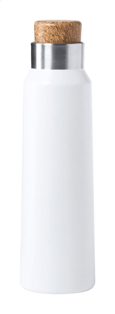 Einwandige Edelstahl-Sportflasche mit Korkverschluss, 770 ml. In Kraftpapierkarton. Nicht geeignet für kohlensäurehaltige Getränke.