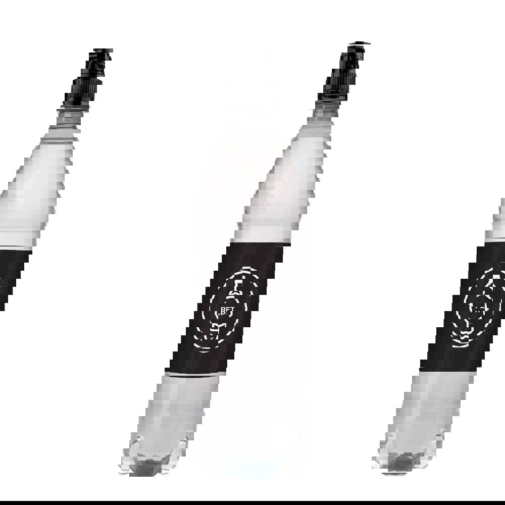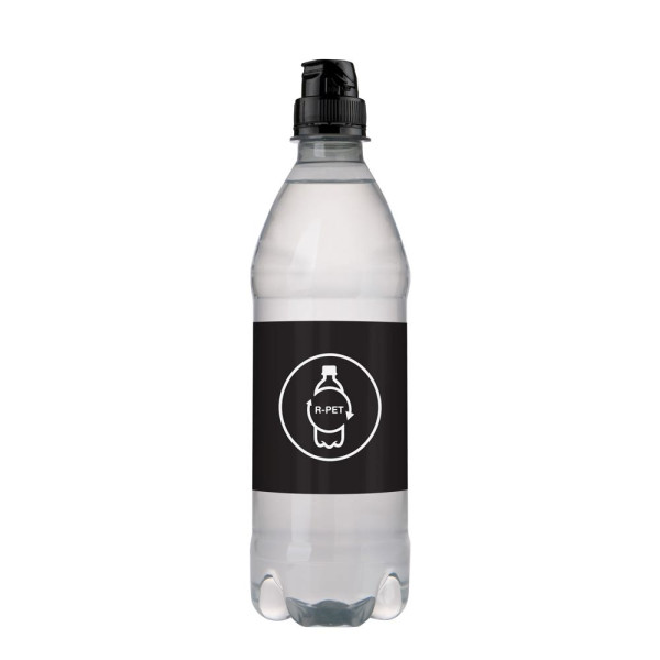 500 ml natürliches Quellwasser in einer transparenten Flasche mit Sportverschluß. Farbe Kappe schwarz.