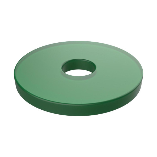 Einfacher Einkaufswagenchip aus Kunststoff mit einem Loch in der Mitte.