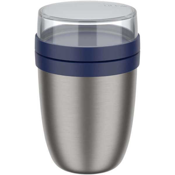 Isolierter Lunchpot mit zwei getrennten Behälter zur Aufbewahrung verschiedener Zutaten. Beide Behälter verfügen über einen eigenen Deckel, sodass sich die Inhalte nicht vermischen. Hält Speisen 6 bis 8 Stunden warm oder bis zu 12 Stunden kalt. Das Fassungsvermögen des oberen, transparenten Behälters beträgt 200 ml. Das Fassungsvermögen des unteren Behälters beträgt 500 ml. Die Behälter sind aus strapazierfähigem Material gefertigt, sodass die Außenseite kühl und trocken bleibt. Handwäsche wird empfohlen. Die Kunststoffteile des Deckels sind spülmaschinengeeignet.