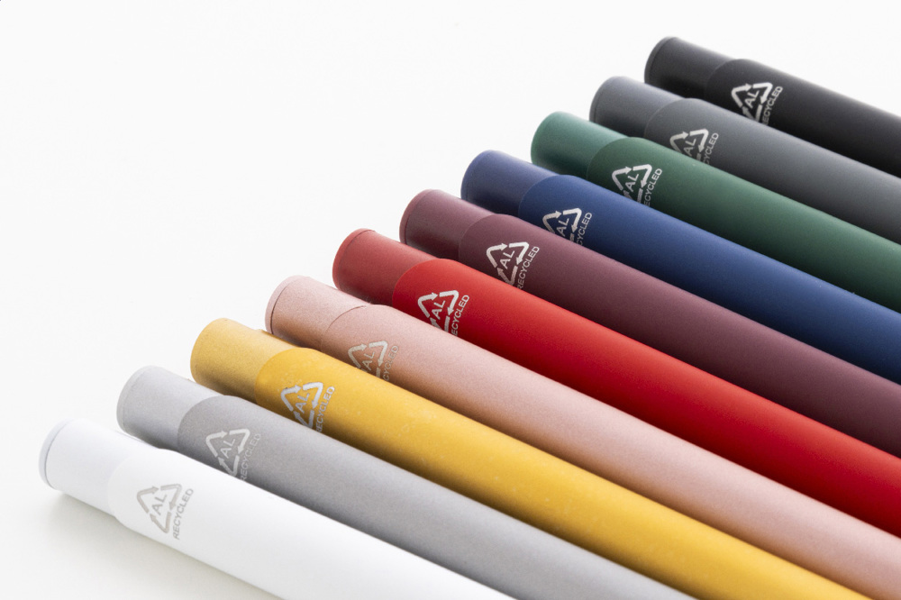 Kugelschreiber aus recyceltem Aluminium mit gummiertem Gehäuse und farblich passenden Details,... mehr