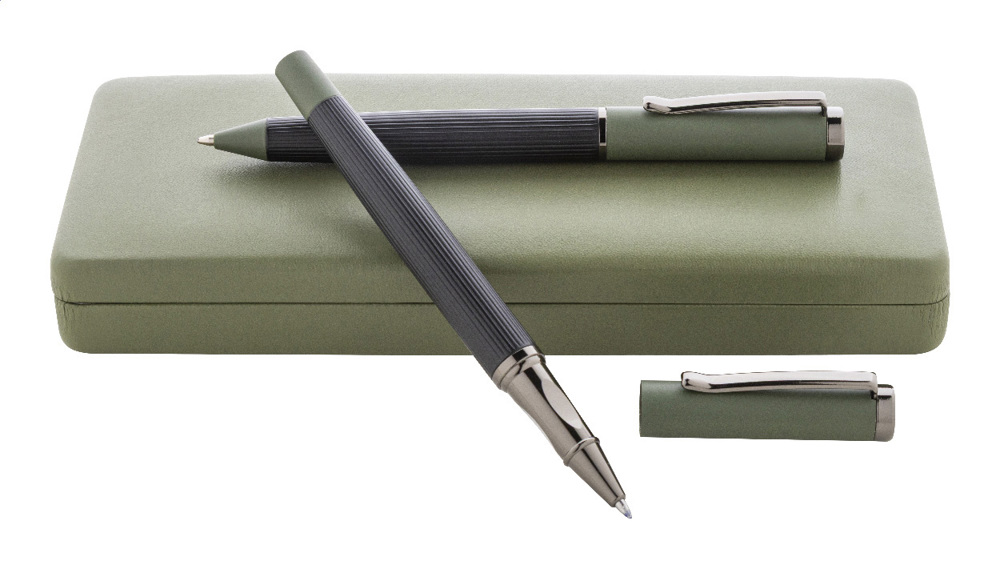 Elegantes Kugelschreiber- und Tintenroller-Set aus Metall mit gestreiftem Schaft, farbigen... mehr