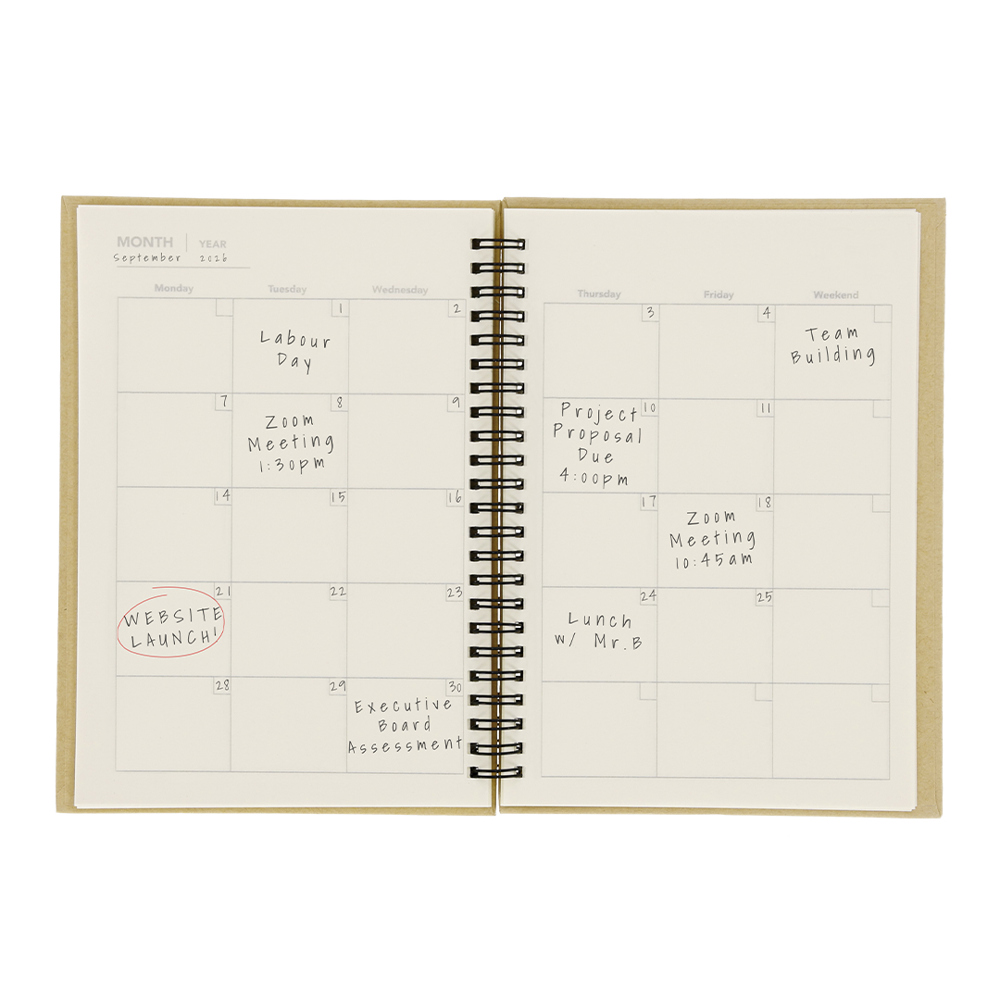 Notizbuch mit integriertem Monatsplaner, mit Hardcover aus recycelter Pappe. Enthält 80 cremefarbene Blätter mit Linien und Abreißmarkierungen, 13 undatierte Monatsplaner-Blätter mit Monatsübersicht sowie 2 zusätzliche linierte Blätter für Notizen. Perfekt, um den Monat zu planen, Notizen zu machen und den Alltag zu organisieren. Der recycelte Karton stammt aus der Wiederverwendung von Produktionsüberschüssen und Altpapier am Ende seines Lebenszyklus, wodurch er zu einer umweltfreundlichen und nachhaltigen Grundlage wird.