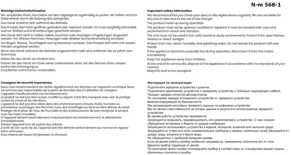 Output USB-A: 5V/3A, 9V/2A, 12V/1,5A (18W max.)