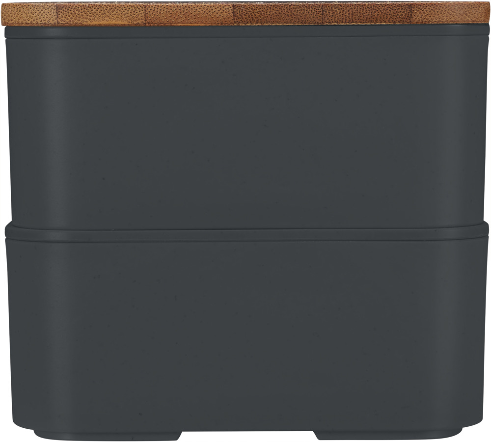 Nachhaltig und funktional und im Trend! In dieser Lunchbox ist Ihre komplette Mahlzeit stilsicher verpackt! Diese Brotdose kommt mit zwei Aufbewahrungs-Boxen, Elastikband, Besteckset und Bambus-Schneidebrett als Deckel.