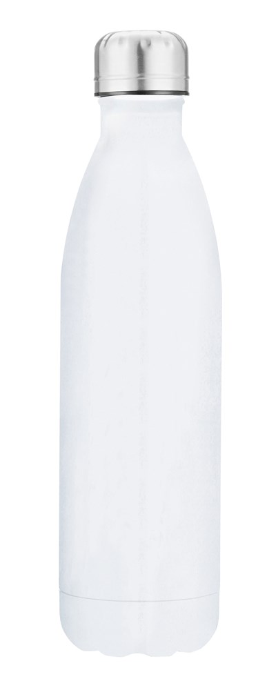Einfach weiß. Zeitlos schön und immer aktuell. Lassen Sie Ihre Werbebotschaft strahlen! Doppelwandige Vakuumflasche Material: Edelstahl, matt weiß lackiert, PP, Silikon Inhalt: 500 ml Maße: Ø 70 mm x 277 mm Gewicht ohne Verpackung: 293 g Kunststofffreie Einzelverpackung