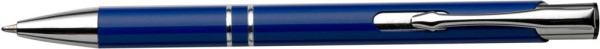 Kugelschreiber aus Aluminium, farbig lackiert, mit Metall-Clip, Zierringen aus Metall und blauer Mine. Ausgestattet mit deutscher Dokumententinte.