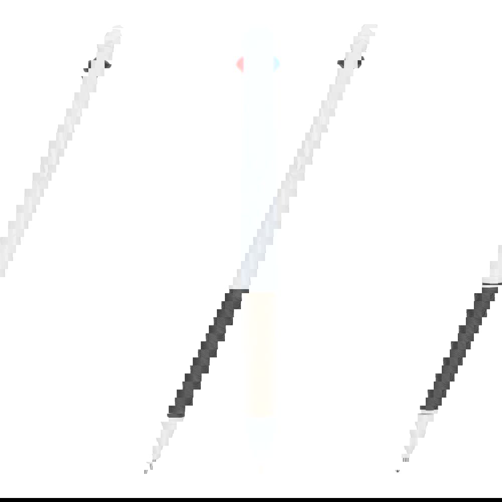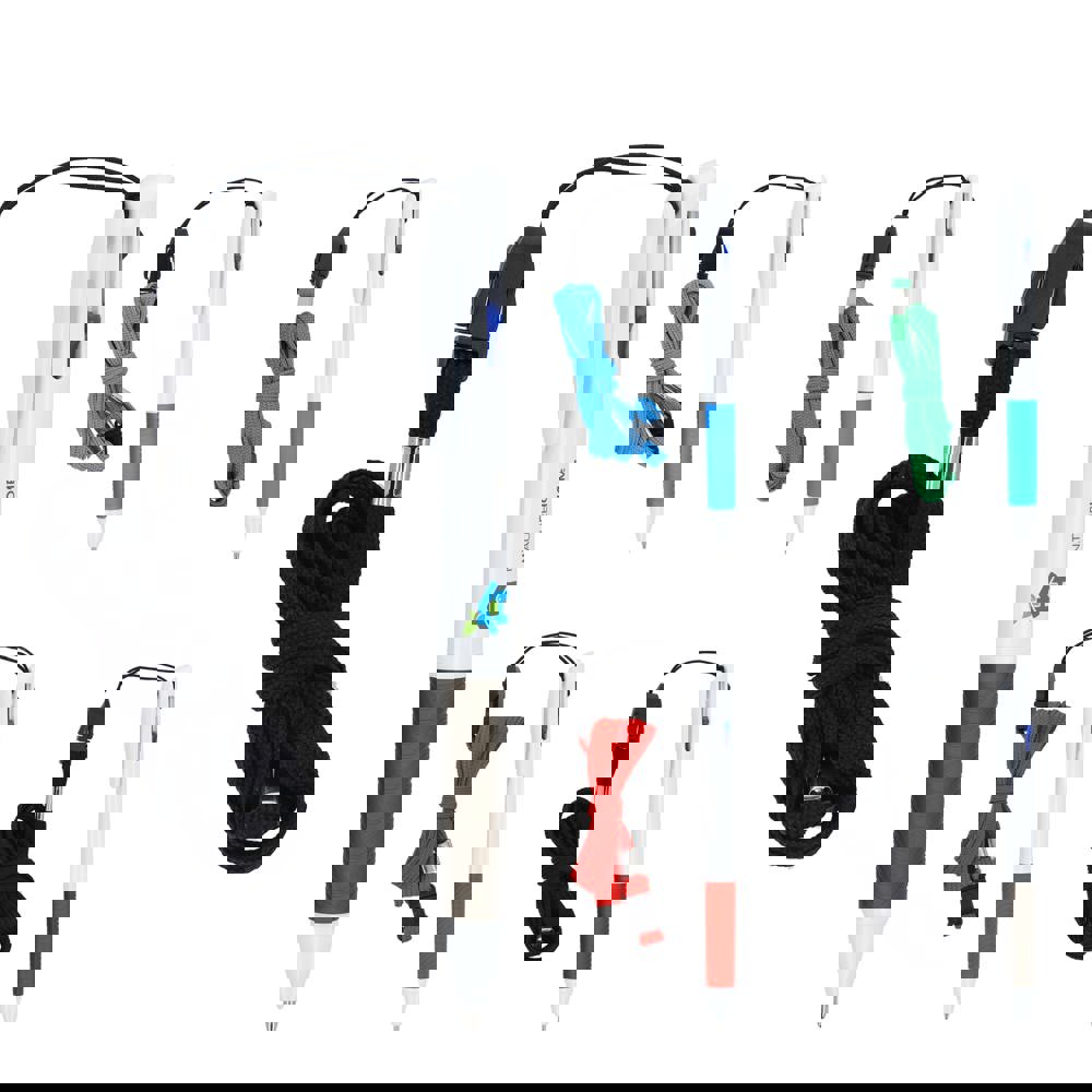 3-farbiger Kugelschreiber mit Griffzone und Schlüsselband. Die Schreibfarben sind Blau, Schwarz und Rot.
