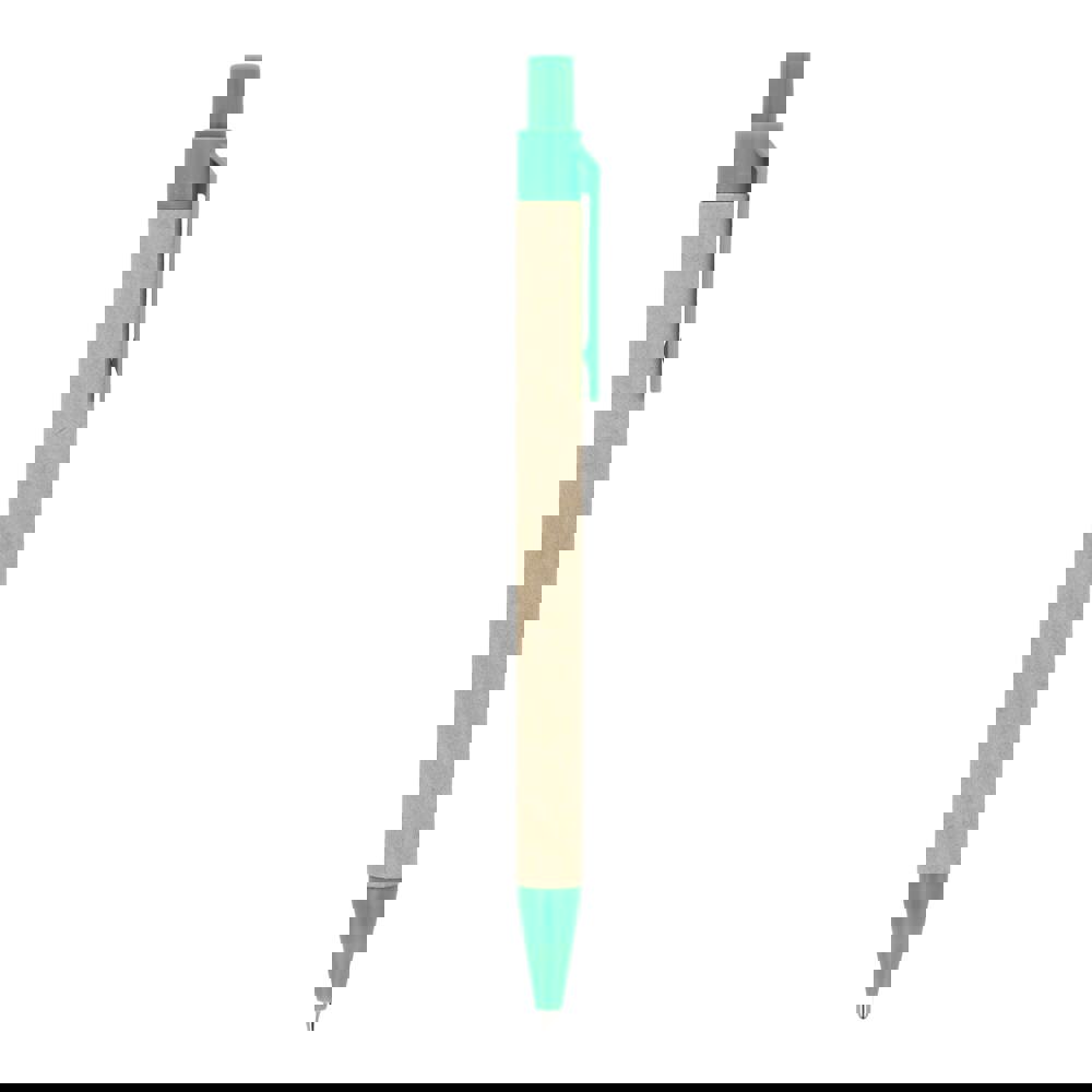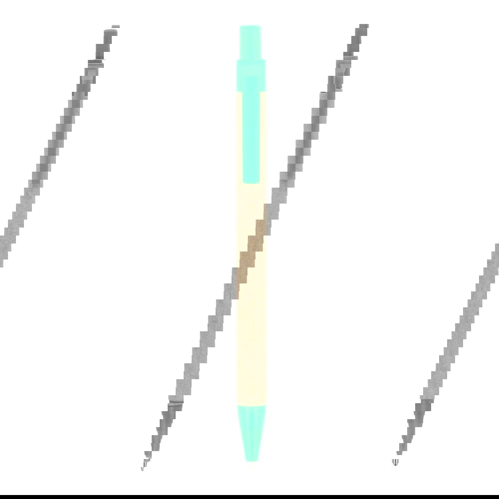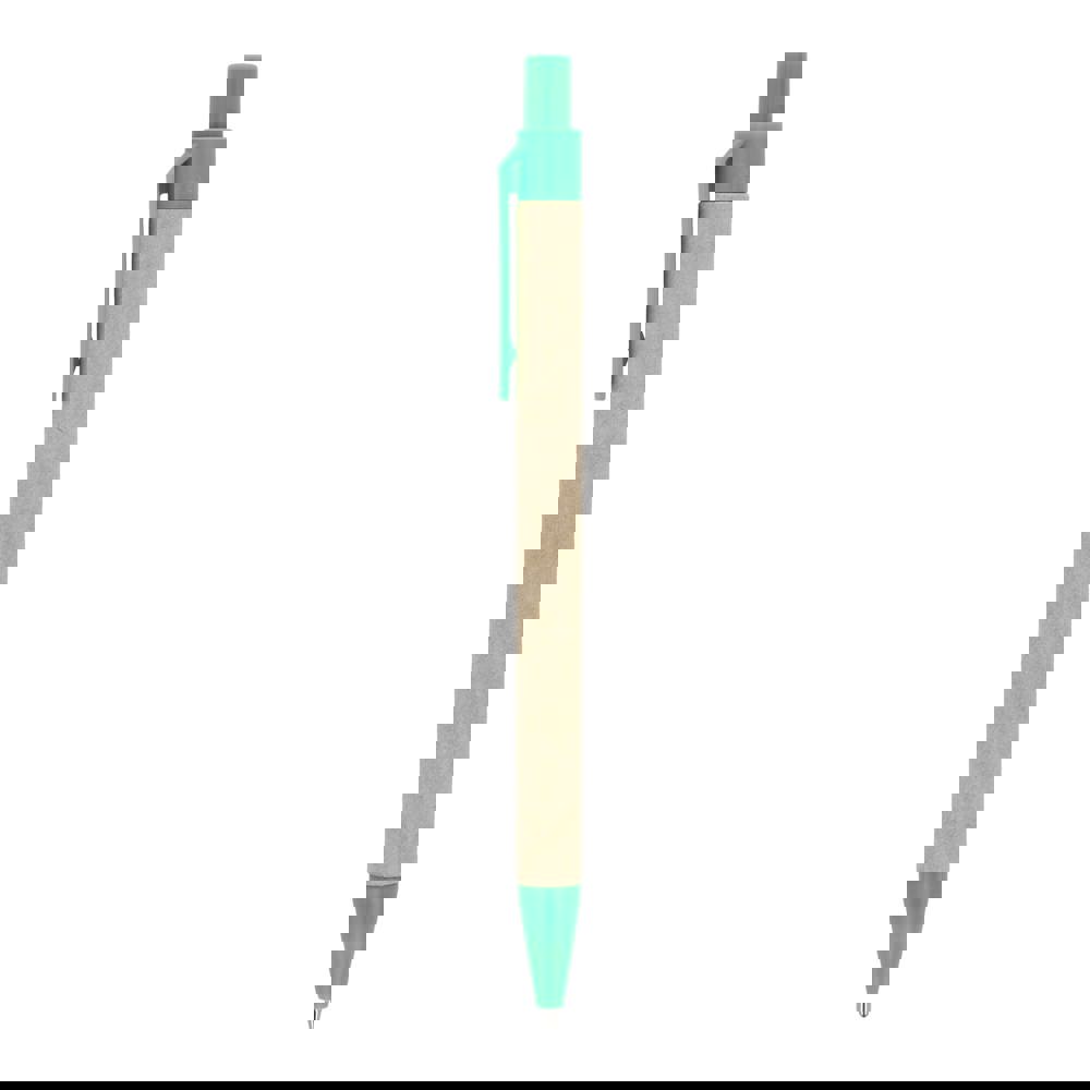 Papierkugelschreiber mit farbigen Kunststoffteilen aus recyceltem Material. Mit blauer Schreibmine.